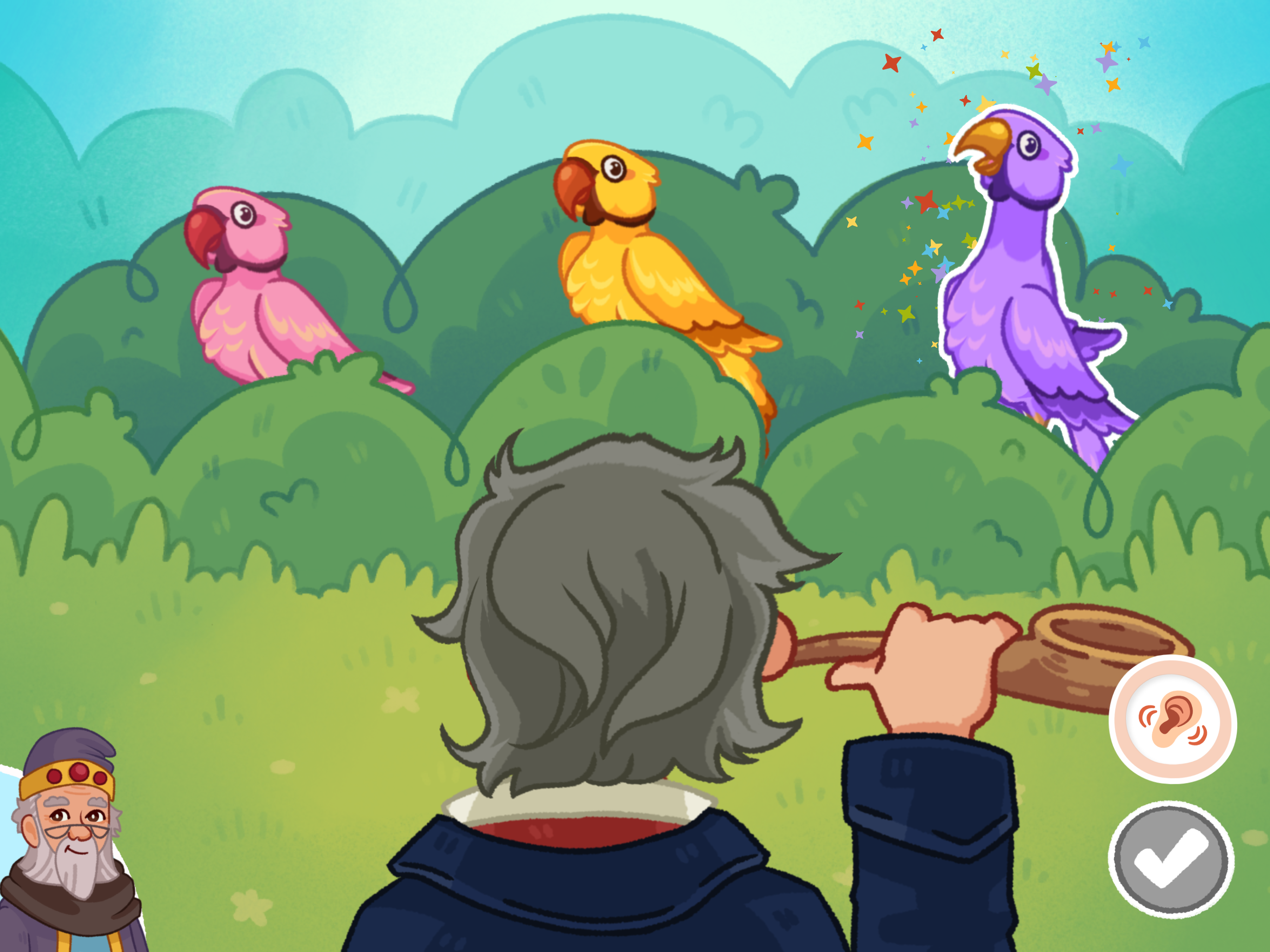 Together with the team, I helped realize five language games and seven math games, each with multiple difficulty levels and different visual variations, as well as around 119 short logic puzzle games. I storyboarded, illustrated, and helped animate the cutscenes, and worked with the development team to implement parameter-driven gameplay animations.